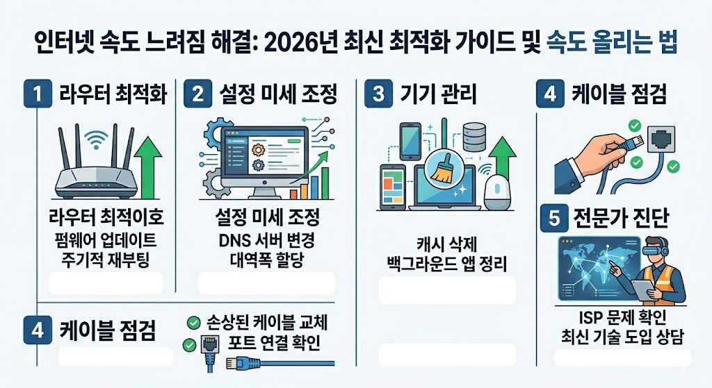 2026년 최신 Wi-Fi 7 및 10기가 인터넷 환경에 맞춘 인터넷 속도 느려짐 해결 방법 7가지를 공개합니다.